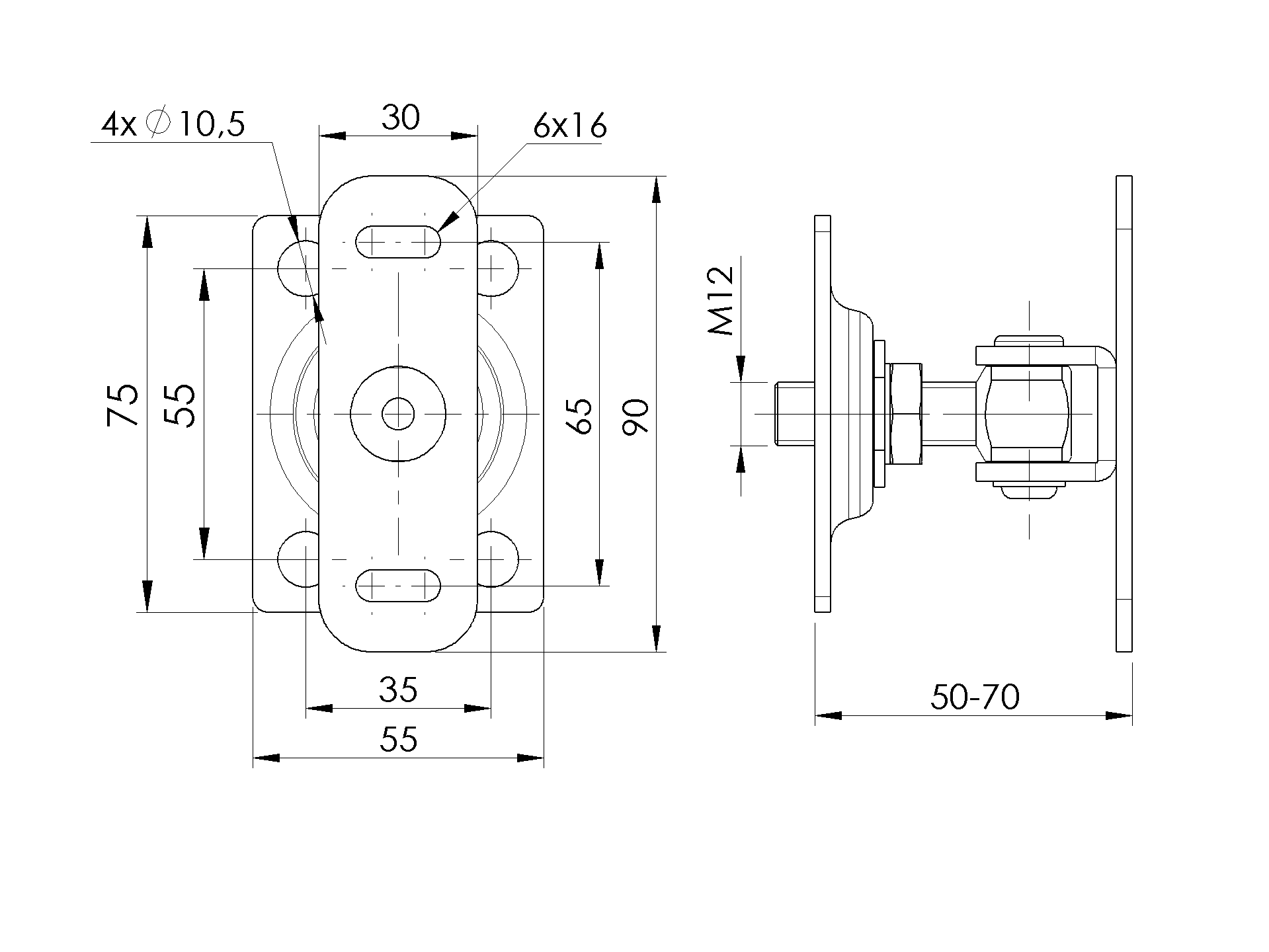 Lowest price in the last 30 days: €10,40 without VATIn stock (8269 units)Adjustable hinge with anchoring flange M12, 55x75 D8/53-M12-K