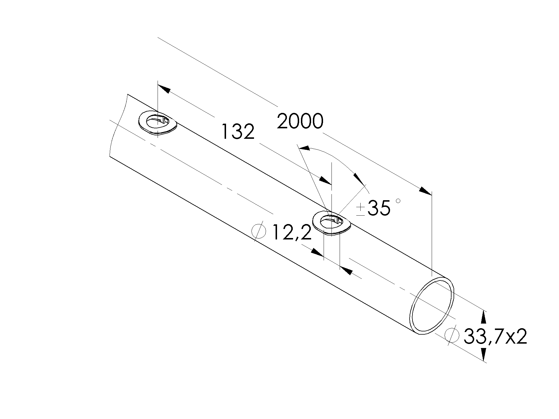 Brushed pipe AISI304,0D42,4x2/15xd12,5/L1980 A/42,4x2-15x14-2000
