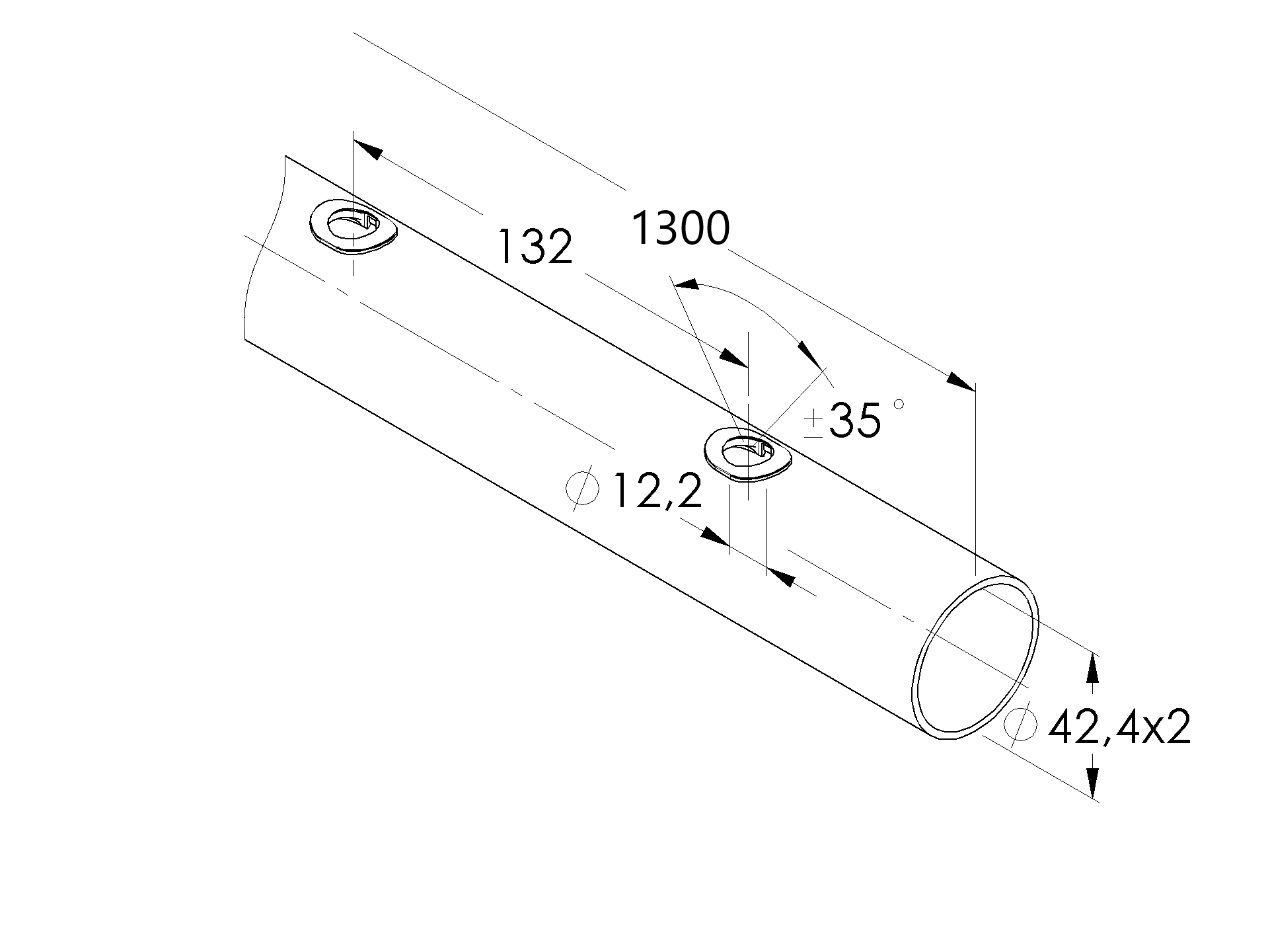 15 pcsMaterialStainless steel AISI 304Surface finishRawL16Brushed pipe AISI304,0D42,4x2/15xd12,5/L1980 A/42,4x2-10x12-U-1300-PVC