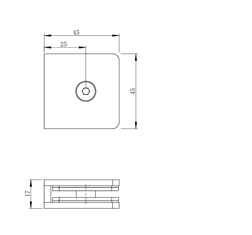 Glass clamp, Zamak, 45x45x20/T 8-10 mm GS-ZN/ZP-901/S