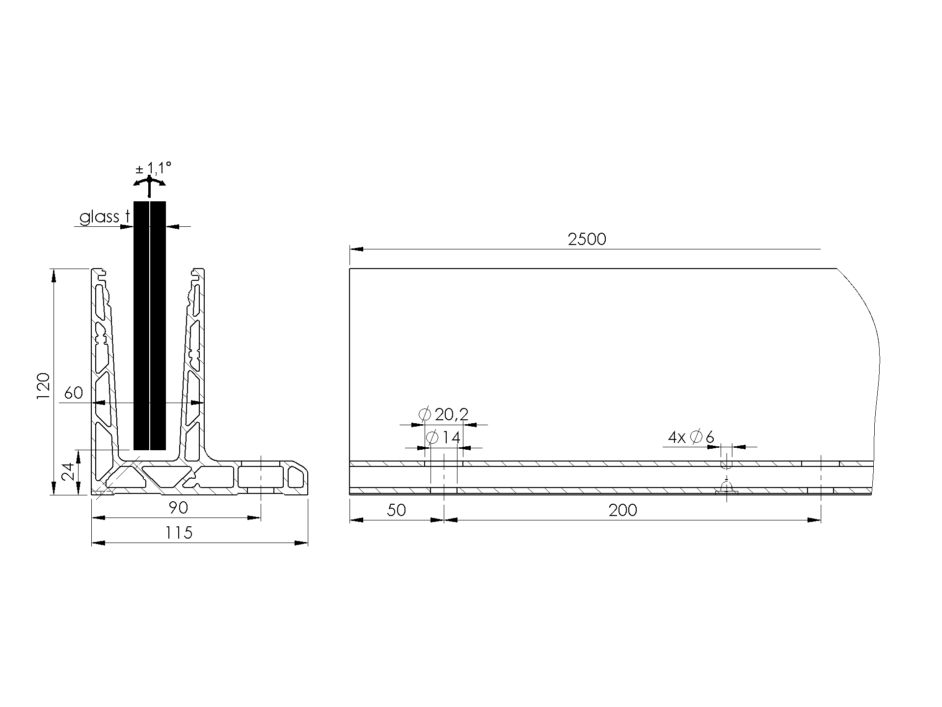 MaterialAluminiumSurface finishSatin-ELOXGlass t12,00-21,52Required productsStock availability