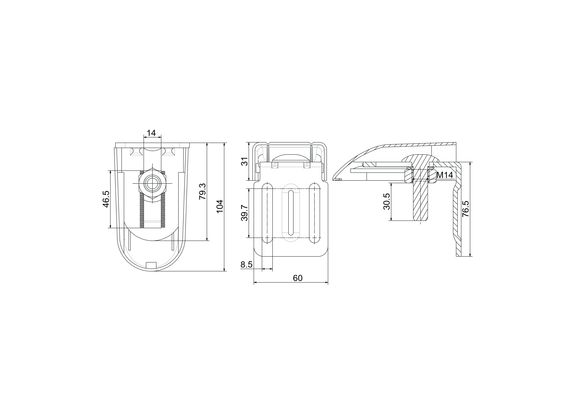 Anchoring bracket - rotary Zn, M16, 55x75 D4/26B-M16