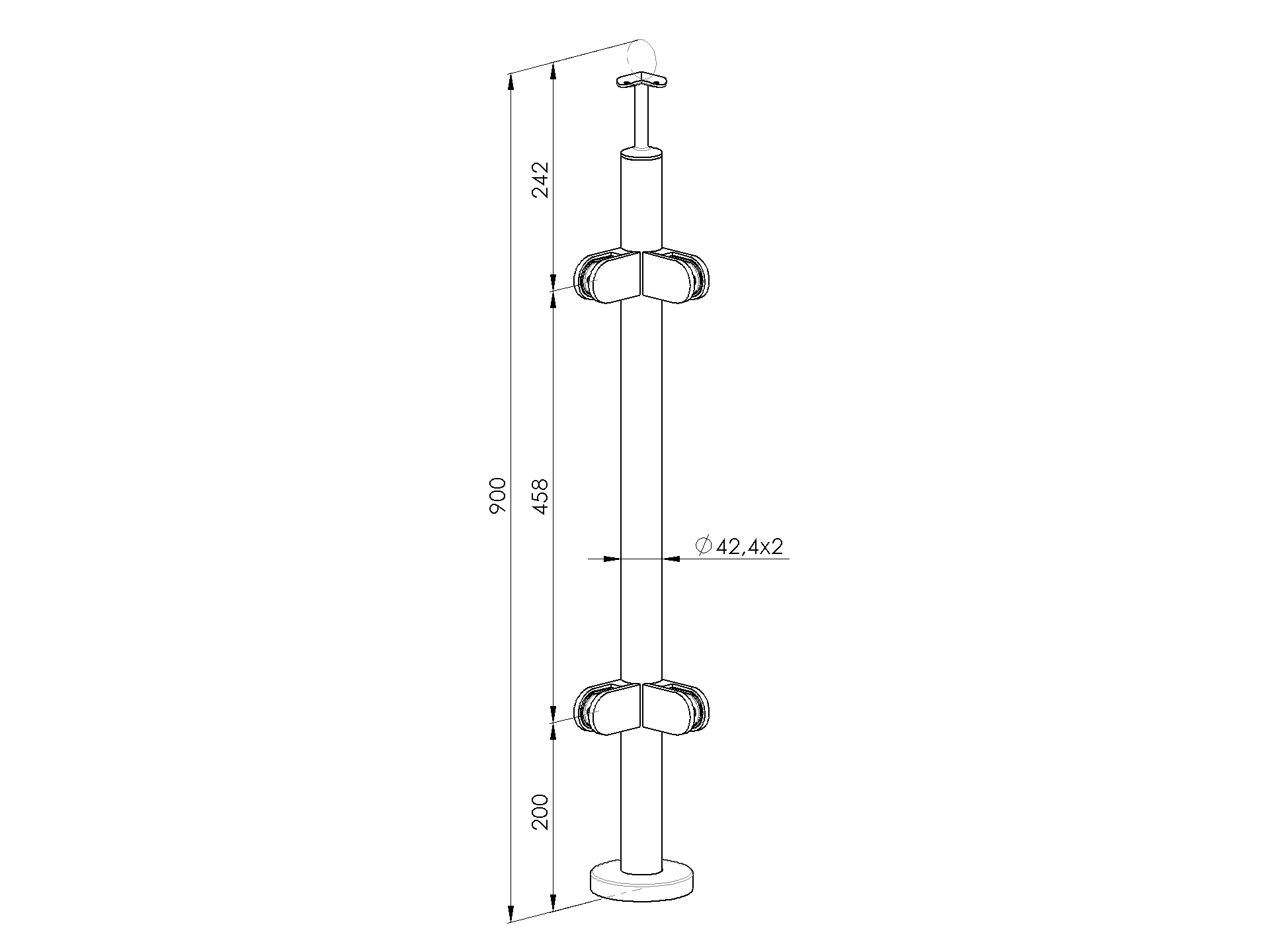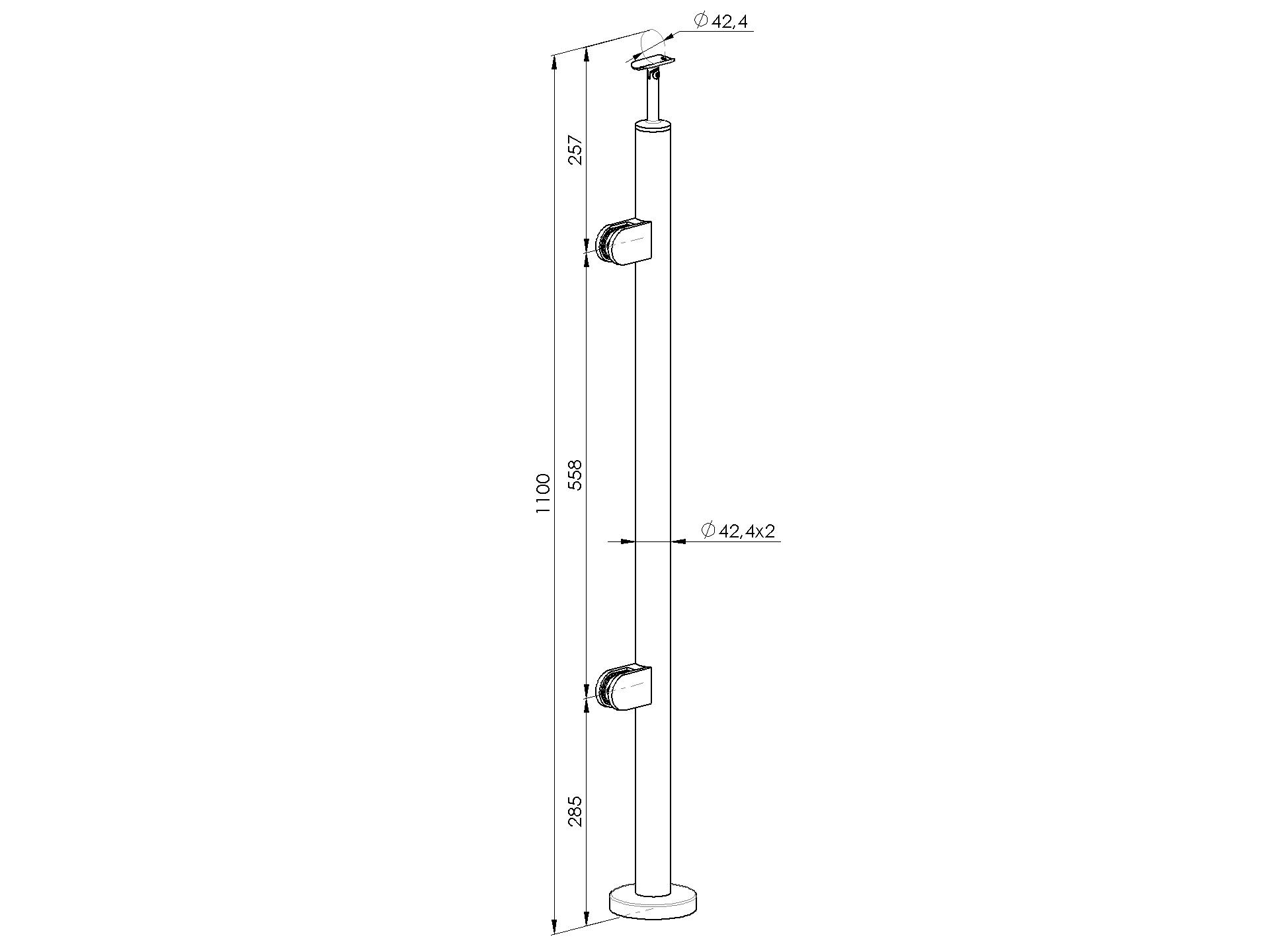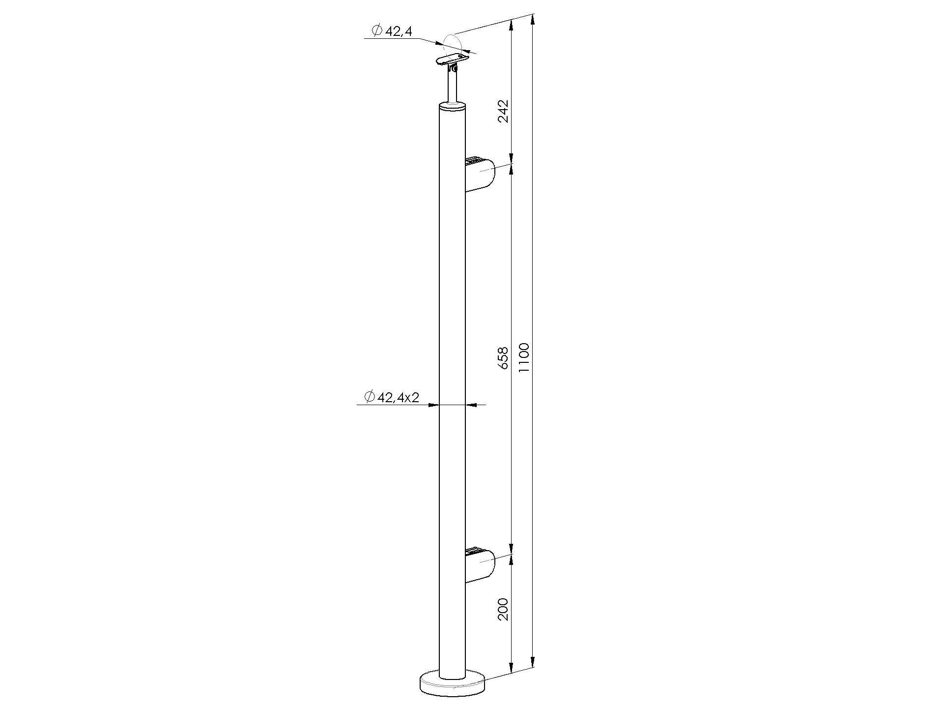 1 pcsMaterialStainless steel AISI 304Surface finishRawPostD42,4x2Required productsRound base cover A/0512-042
