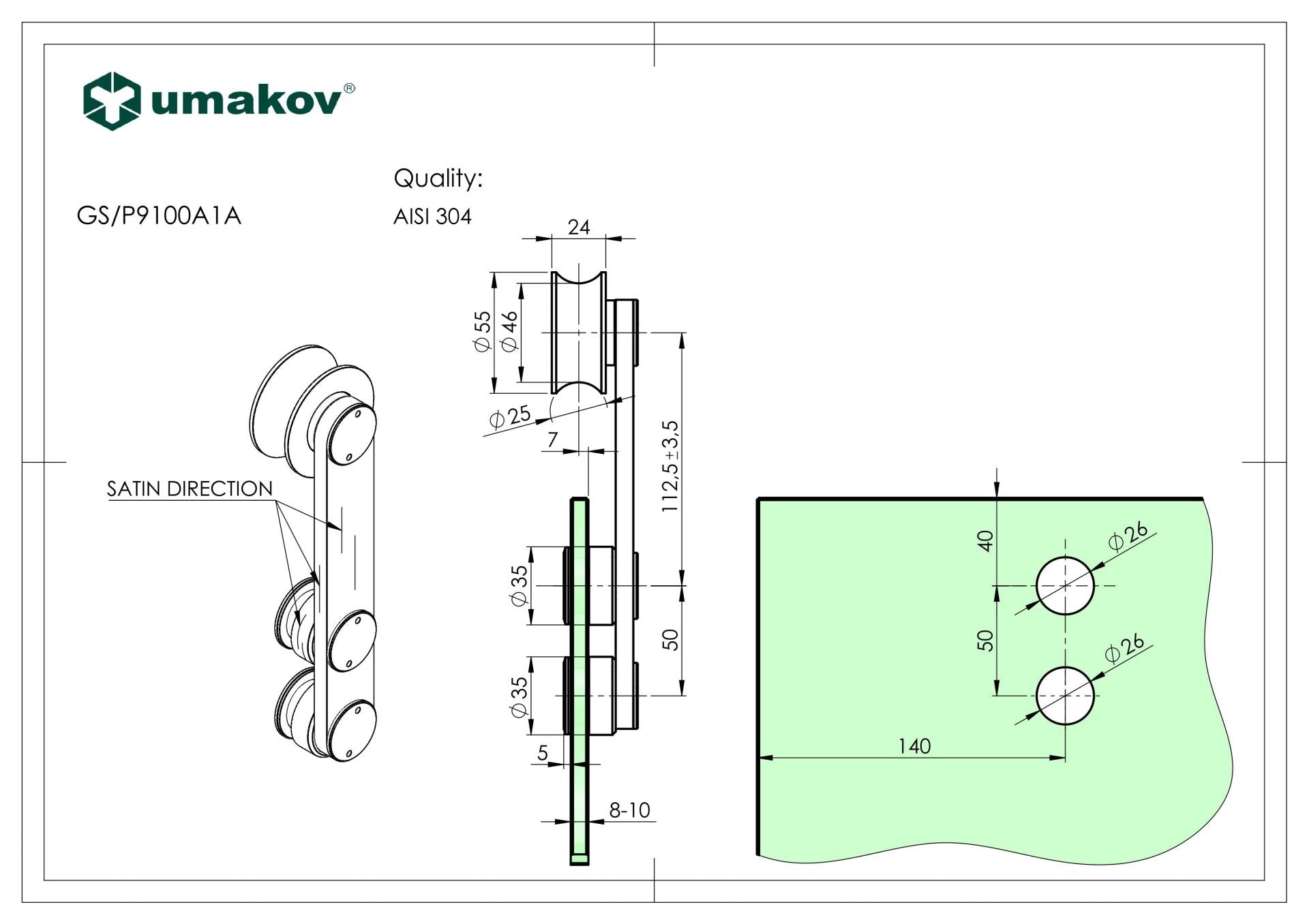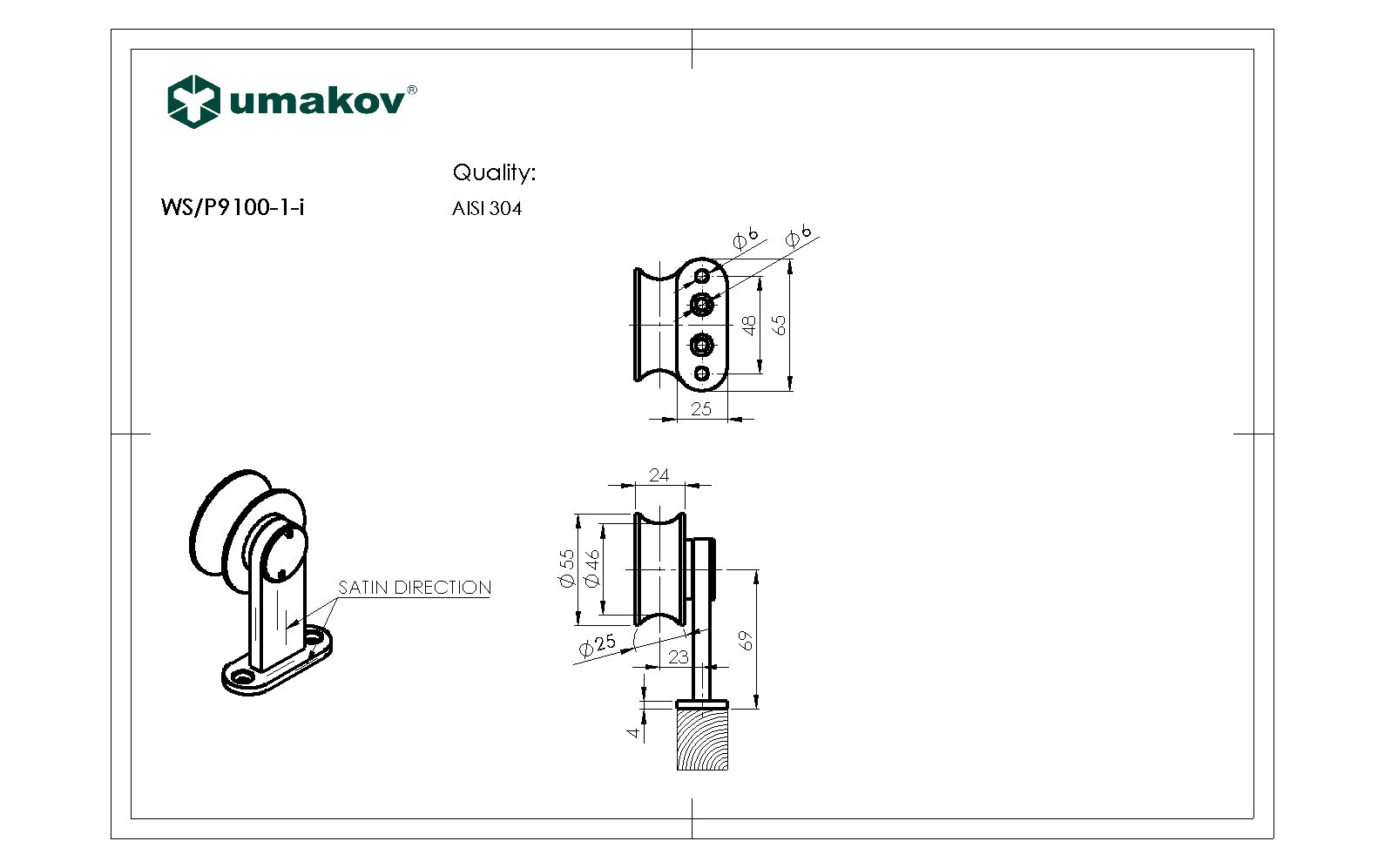 MaterialStainless steel AISI 304Surface finishSatinedGlass holeYesStock availability