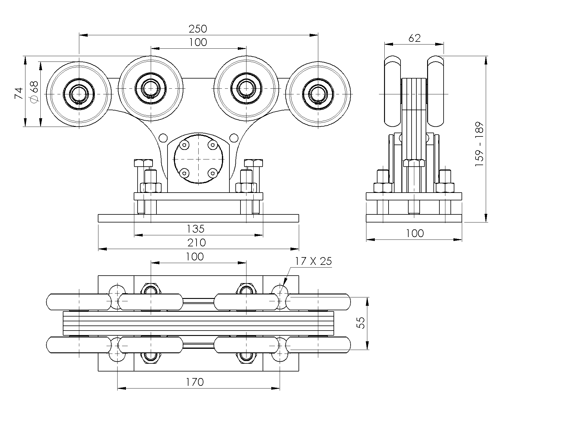 Lowest price in the last 30 days: €556,47 without VATIn stock (27 units)Cantilever gate carriage Zn+NYLON, profile 90x99mm H/34B-4-90x99-NYLON