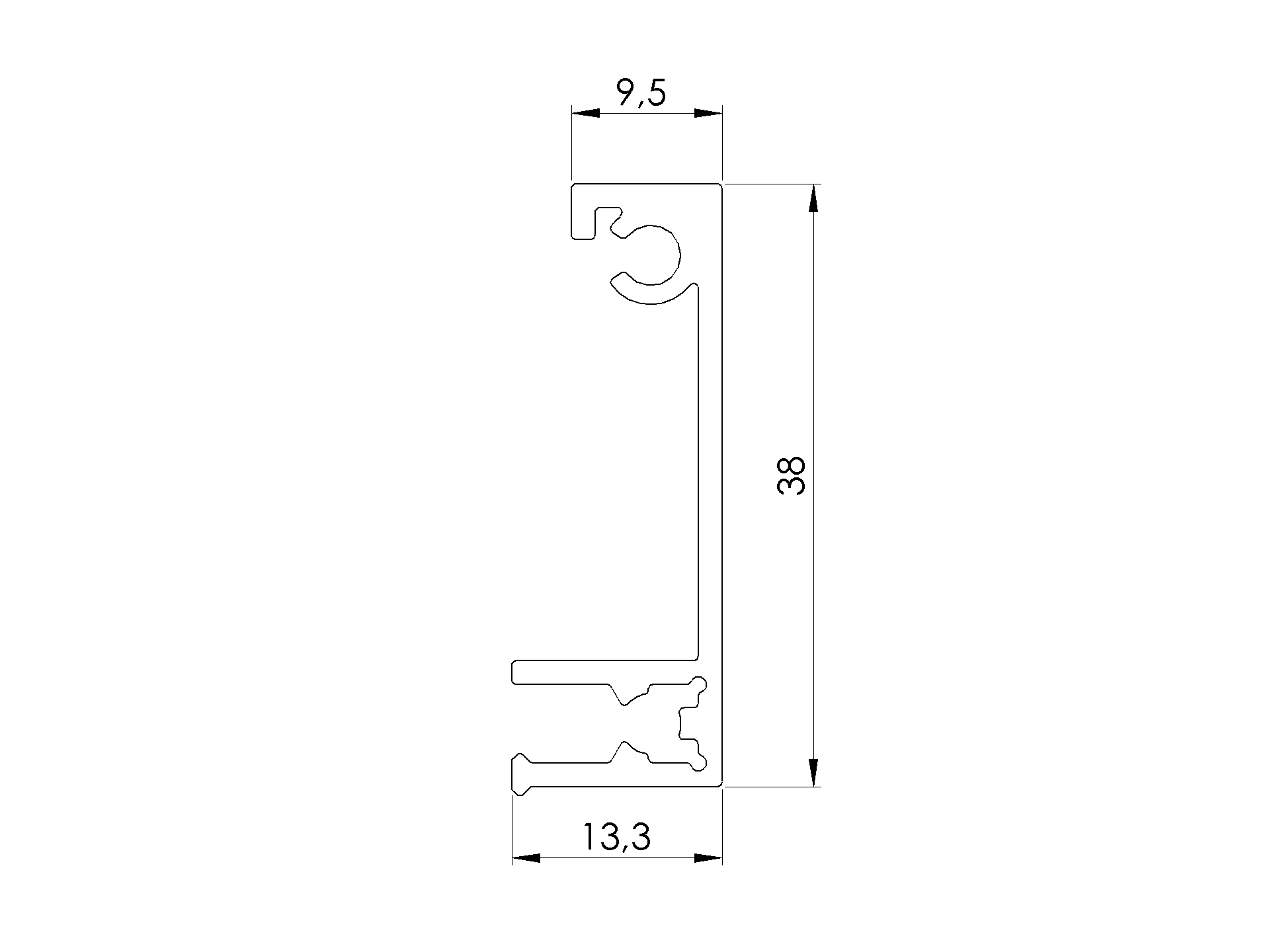 Aluminum fence adapter for fillings 20 - 6000mm FG/AS20-6000-N