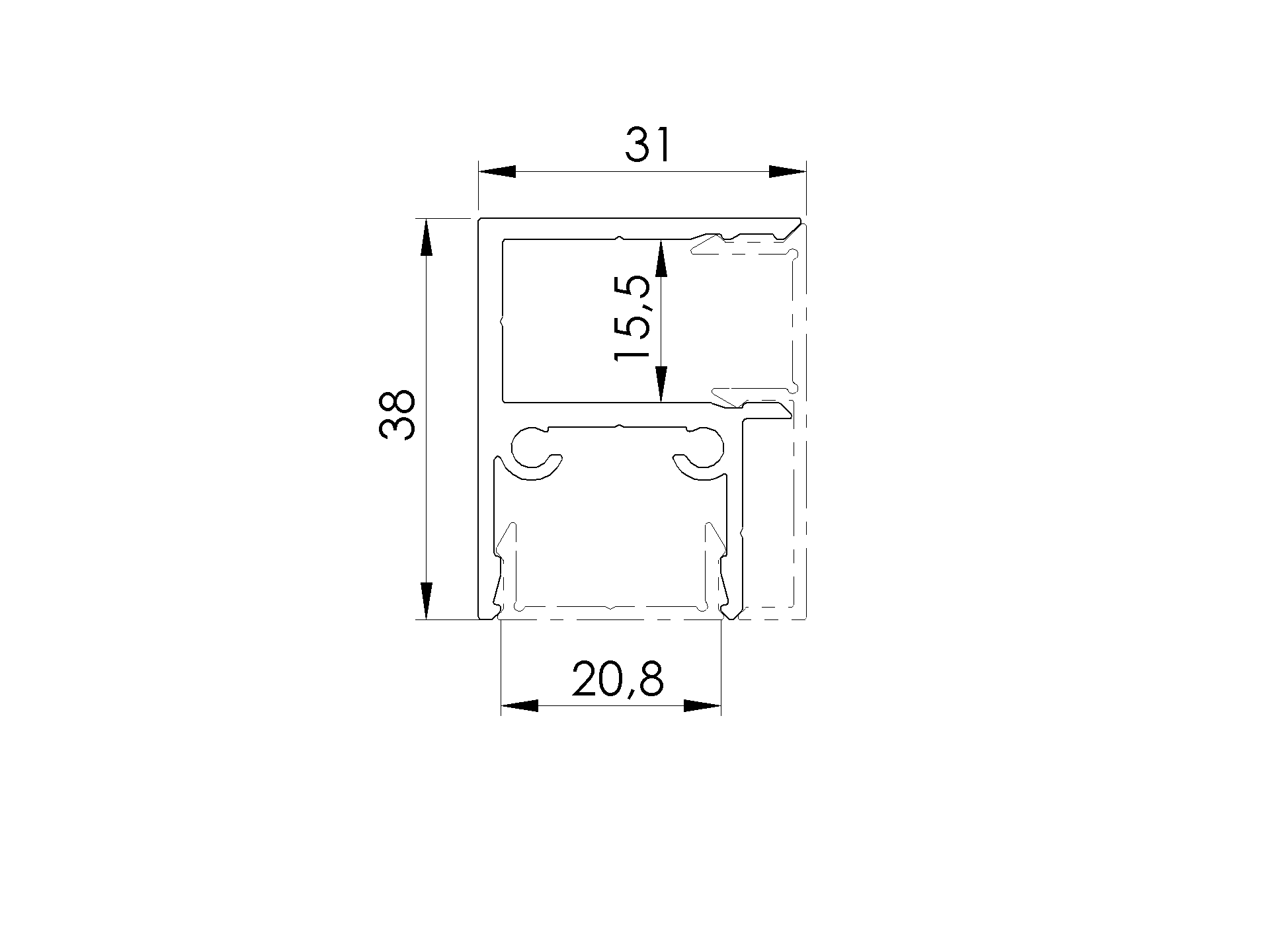 Aluminum fence adapter for fillings - 6000mm cover strip