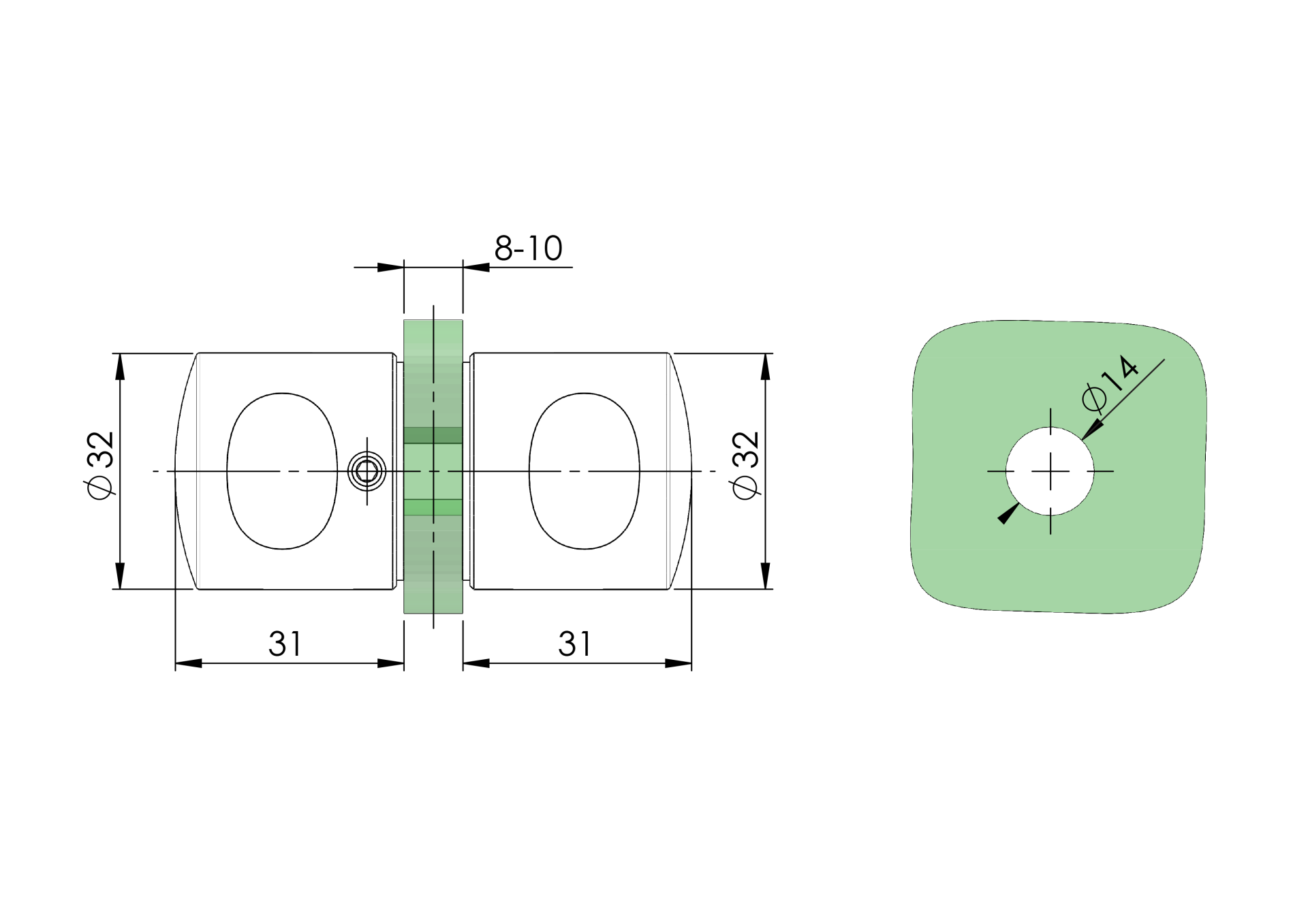 Material: Stainless steel AISI 304, Surface finish: Satined, Glass hole: Yes