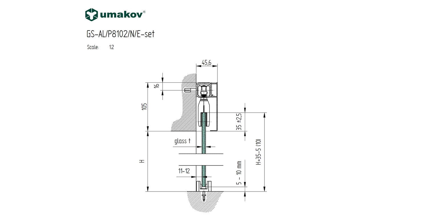 Material: Aluminium, Surface finish: Anodized, Glass t: 8-10, Recommended weight of the wing: max. 80kg, L: 2000, Anchoring: Wall, Self closing mechanism: No, Glass hole: Yes