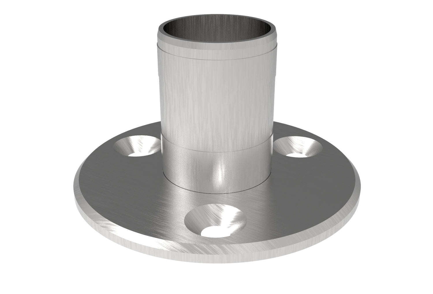 The flange for the top anchoring of the railing posts provides firm support and stabilization of the post and ensures its secure fixation in place. For anchoring, there are 3 holes on the flange, which, together with the anchoring material, ensure attachment to the surface. After connecting with the pipe, they create a post, which is the basis of every railing. For a better design, it is possible to enrich this flange with a rosette cover, which, together with the pillar, will create a perfect and uniform appearance.