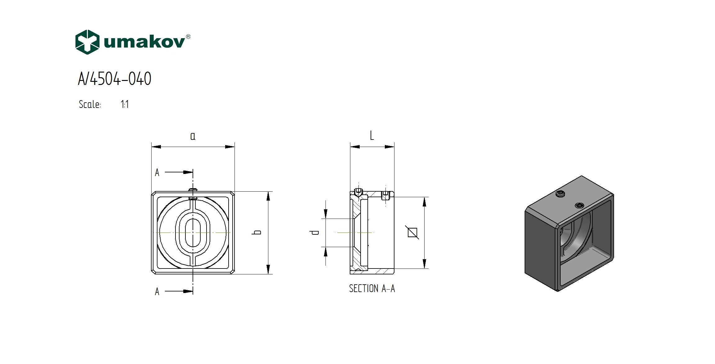 Material: Stainless steel AISI 304, Surface finish: Satined, L: 25, Handrail: 40x40x2, Anchoring: Wall, Phi sq: 40x40, a: 47, b: 47, d: 8,5