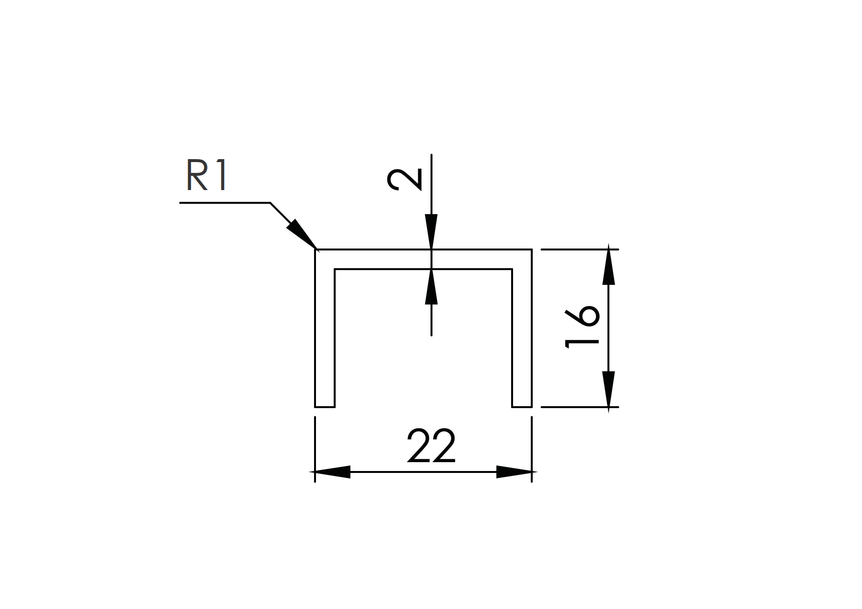 Material: Aluminium, Surface finish: Satin-ELOX, Glass t: 16,0-17,5, L: 3000, Anchoring: Glass, D: 22, H: 16, R: 1, t: 2, LED: No