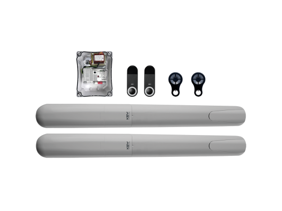 Mark: Key, Max. wing length: 3m, Recommended weight of the wing: 100kg, Frequency (MHz): 433, End point: Need end point for close position, Code type: Rolling, Parts of the set: RAY2224-2x, CT20224-1x, SUB44R-2x, FT32-pár, Drive slowdown: Drive decelerate before endpoint, Motor power supply: DC 24V, Performance: 85W, Force: 1500N, Speed: 90° 18-25s, Power supply: AC 230V, Type: Threaded, Controller: CT20324, Protection level: IP44
