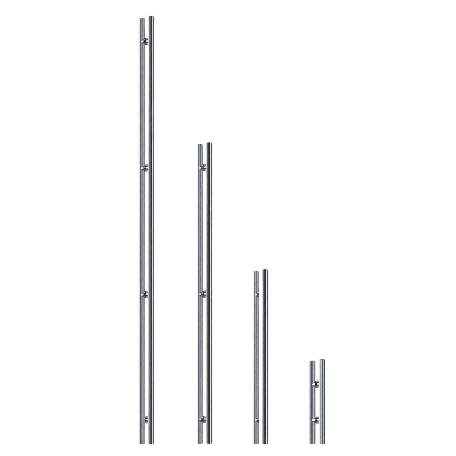 Material: Stainless steel AISI 304, Surface finish: Satined, Glass t: 8-12, H: 500, h: 400, D: 25, Glass hole: Yes
