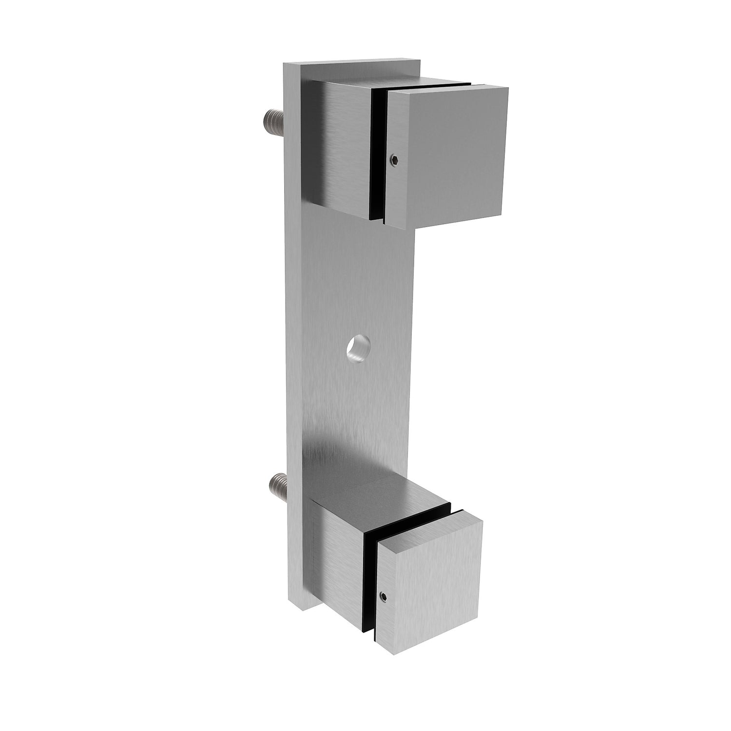 The side anchorage includes an anchor plate with 2pcs of glass point holders A/0745-300. It is used for fixing glass panels to various structures such as railings, balustrades, doors or walls. These glass point holders allow the glass infill to be fixed firmly whilst minimising visual disturbance as they are only positioned at the edges of the glass. The anchor plate with glass point holders is often used in modern architectural applications where it is important to achieve a clean and elegant appearance while providing a secure fixing for the glass infill.
