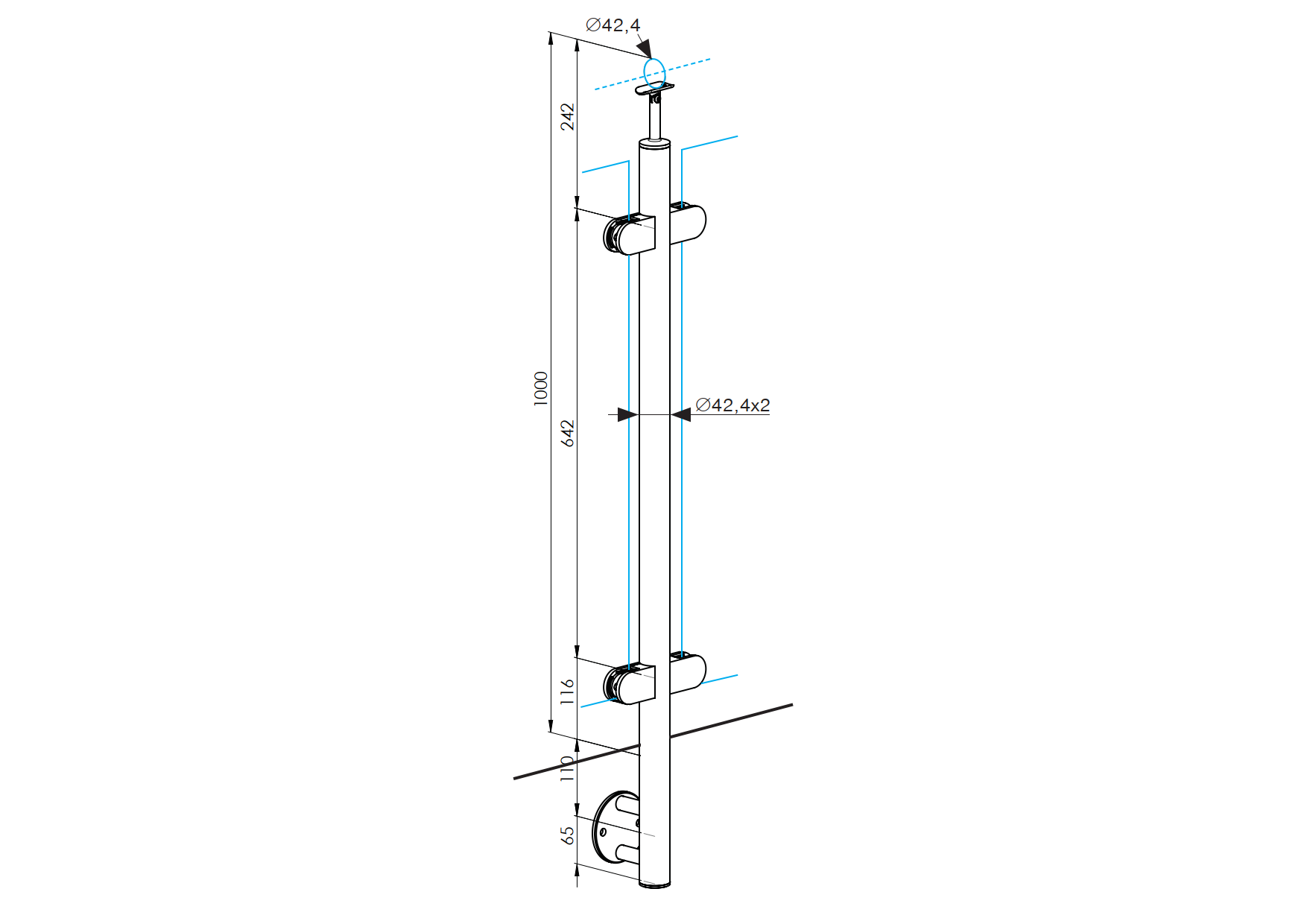 Baluster post inox AISI304, D42,4x2/4xmodel22/H110 A-VR110-4G