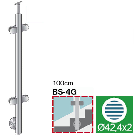 Stainless steel pole, BK-straight AISI304, D42,4/H A-VER-BR100