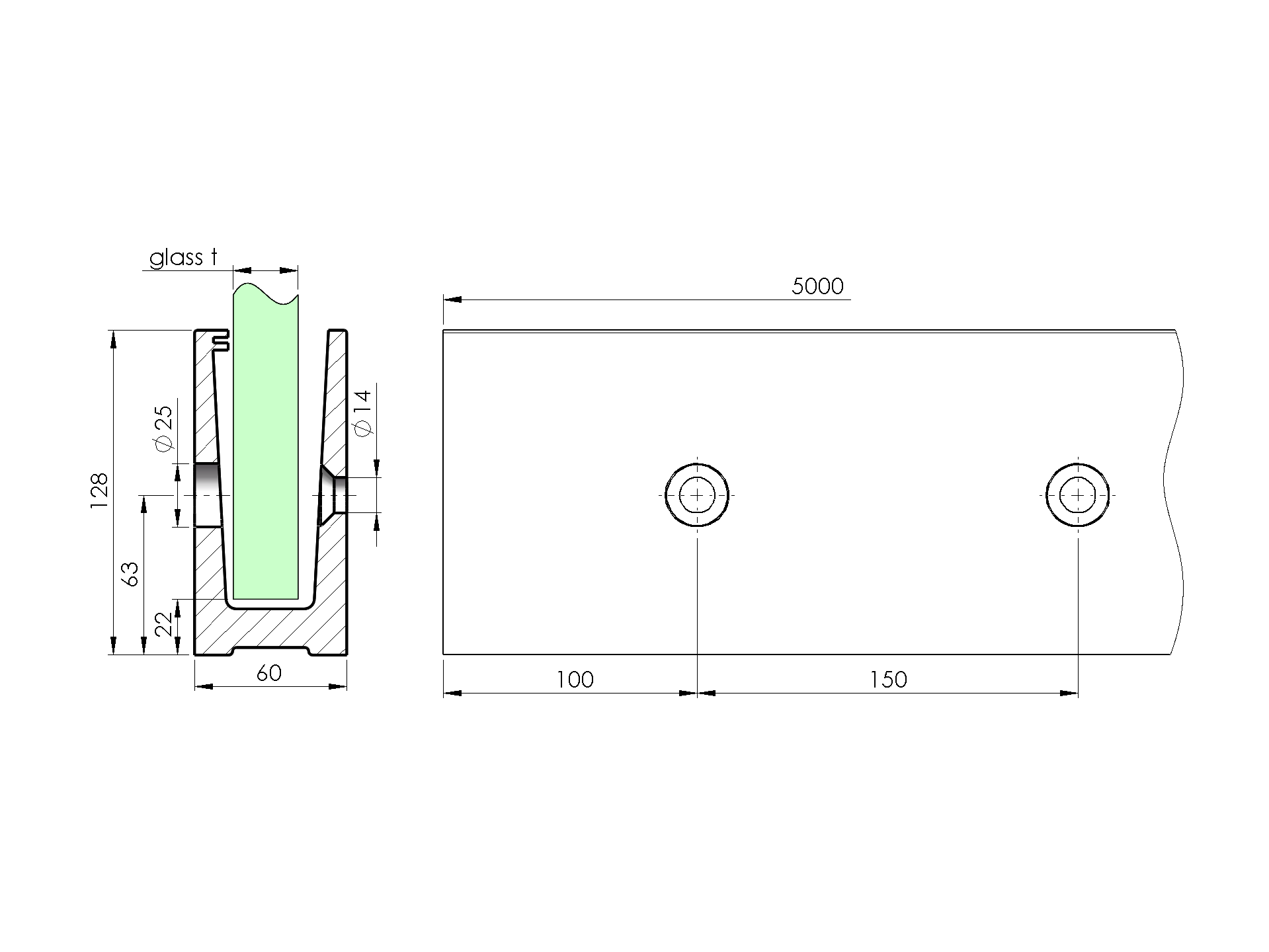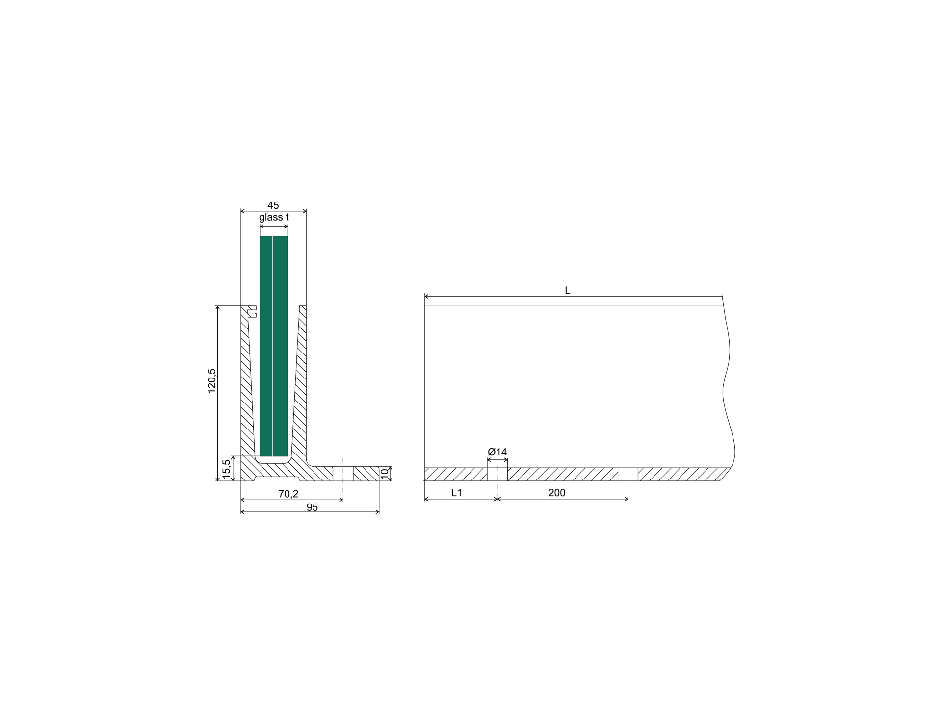 Side mount - glass drainage profile AL/0005-S-E-2500-Drain