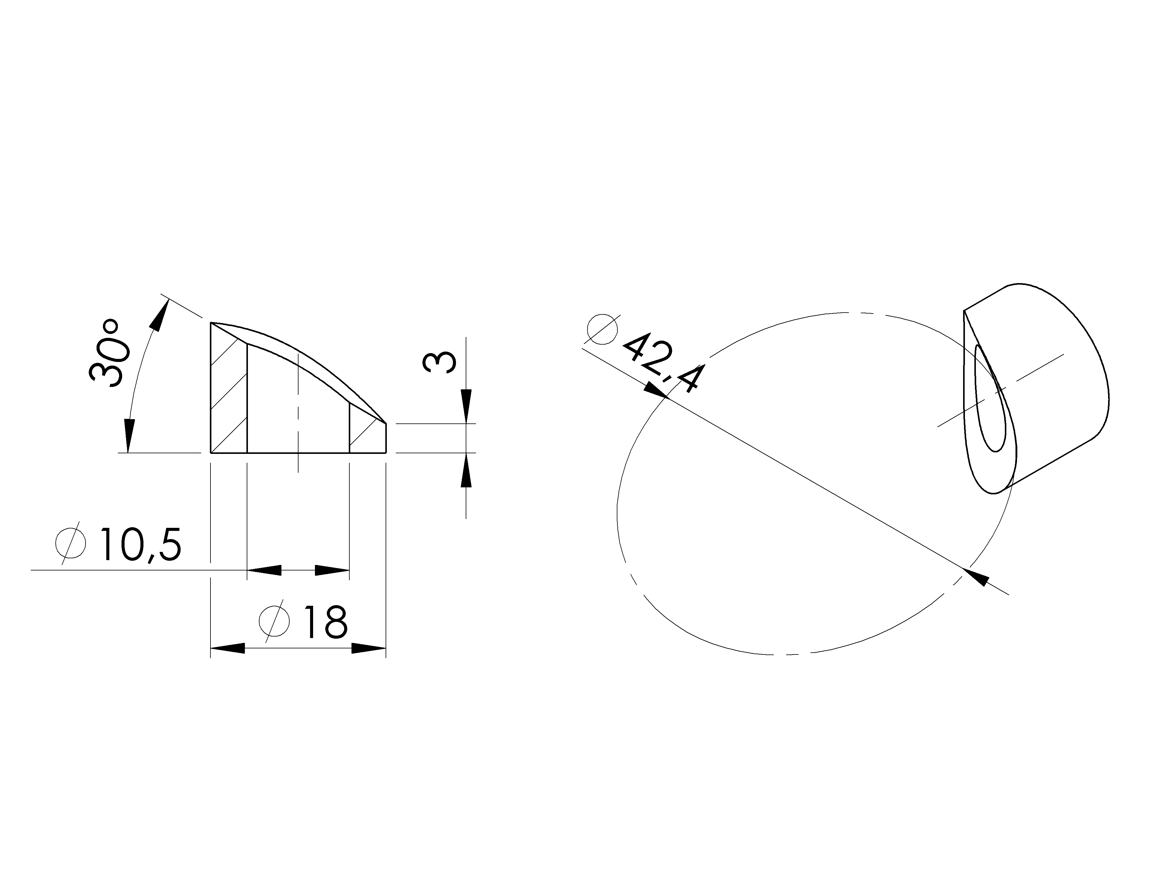 Material: Stainless steel AISI 316, Surface finish: Satined, Filling: Cable, L: 100, Thickness of the wire: 3 mm, M: 6, L1: 48, L2: 38, D: 6,35, d: 3