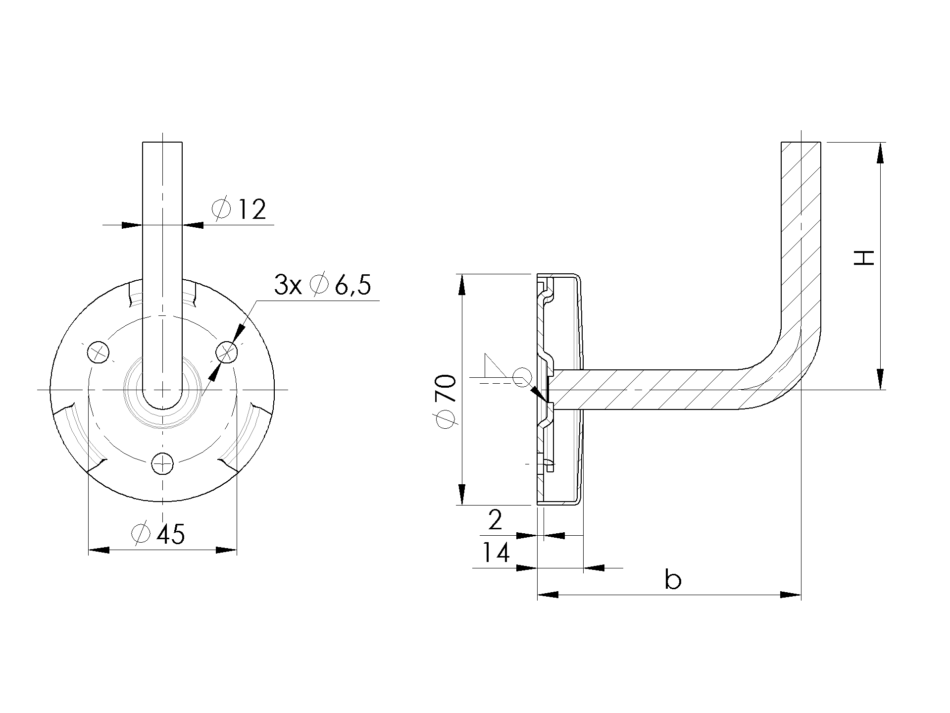 Handrail AISI304, D42,4/L1000mm modular A/M-1000-M