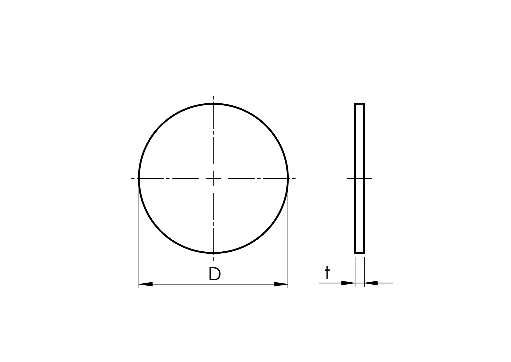 Material: Stainless steel AISI 304, Surface finish: Satined, t: 6, D: 100