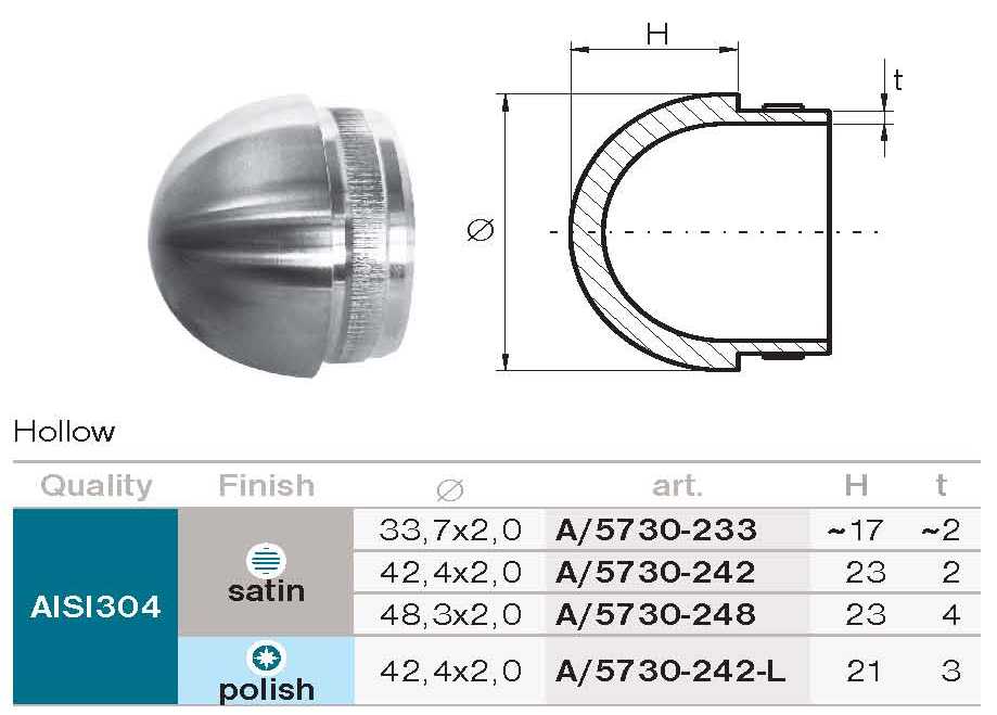 The handrail cover is an integral part of modern construction and architectural solutions, which combines functionality, safety and aesthetics. It serves to cover the open ends of the handle, thus ensuring an aesthetic appearance and protection. Handrail caps are used in a wide range of applications, such as railings and handrails on staircases, balconies, terraces, public spaces or interior corridors. The stainless steel cover of the handle in the shape of a semicircle is suitable for use in interiors and exteriors, depending on the material and surface treatment. The installation of the cover is simple with the help of a pressure connection, by bumping through the indentation.
