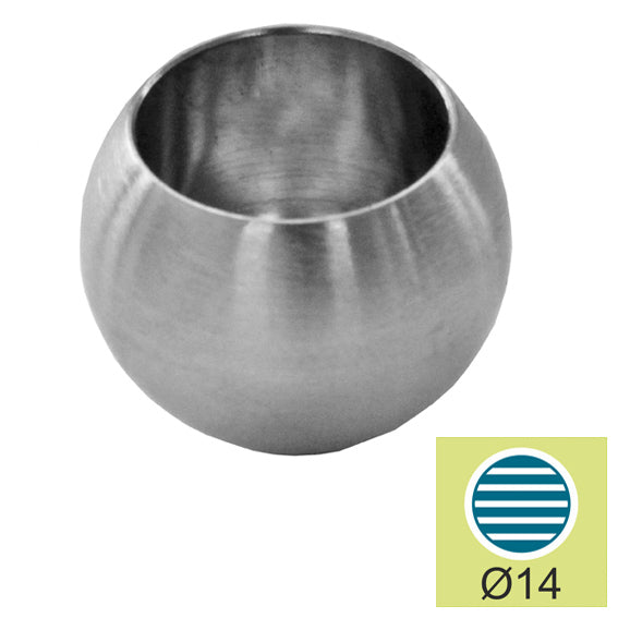 Ball top 20mm, for bar 14mm, stainless steel AISI 304 satined, glued.