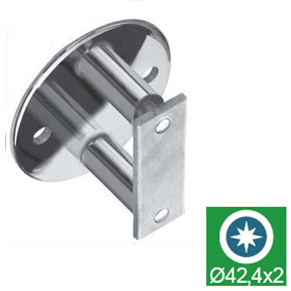 Materiale: Acciaio inossidabile AISI 304, Finitura: Lucido, Corrimano: D42,4x2, Uso: Ancoraggio, Ancoraggio: Da lato, Phi: 42,4