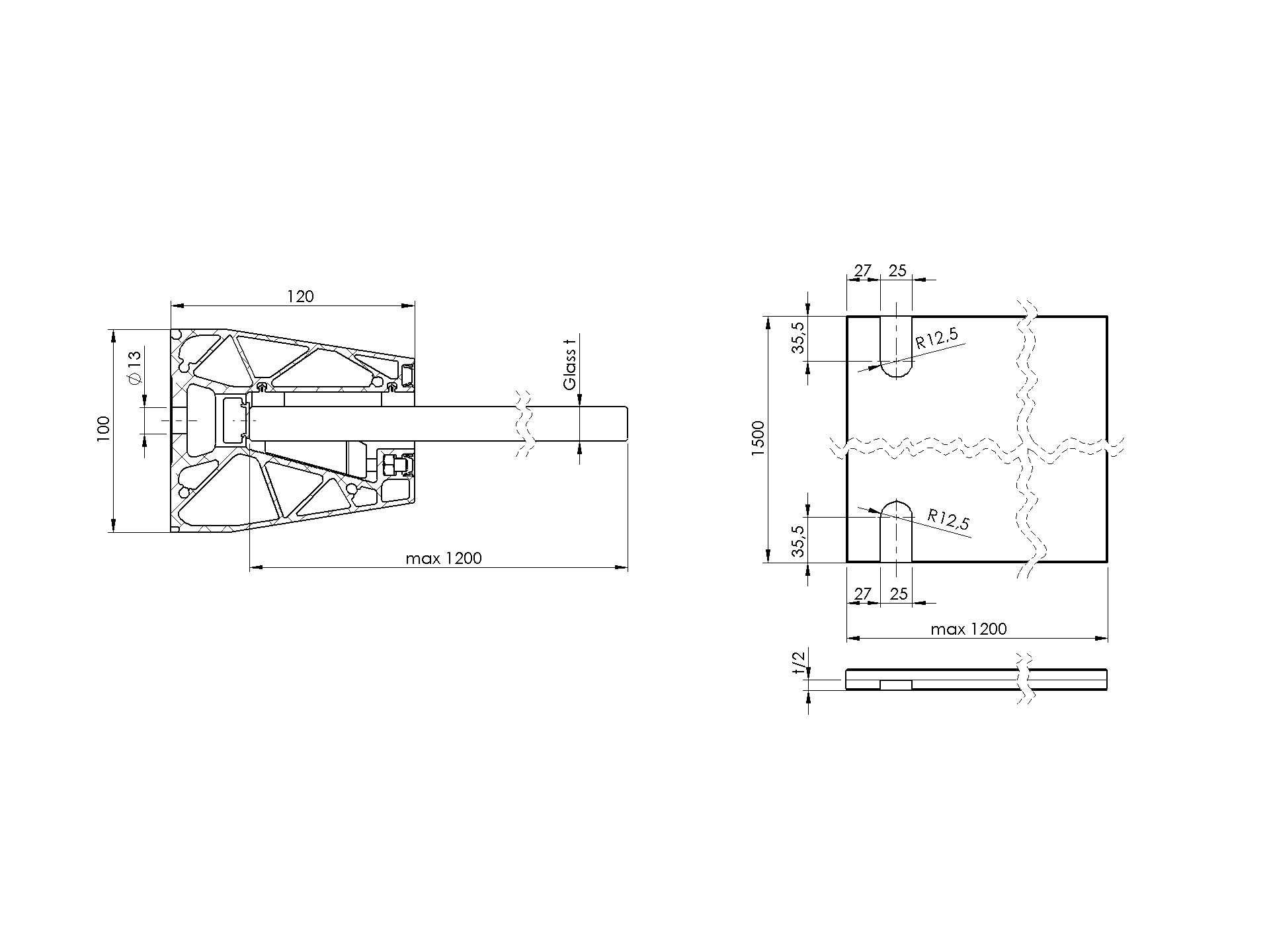 Tettoia in vetro profilo in alluminio AL/PR7-1500-N-E-SET3