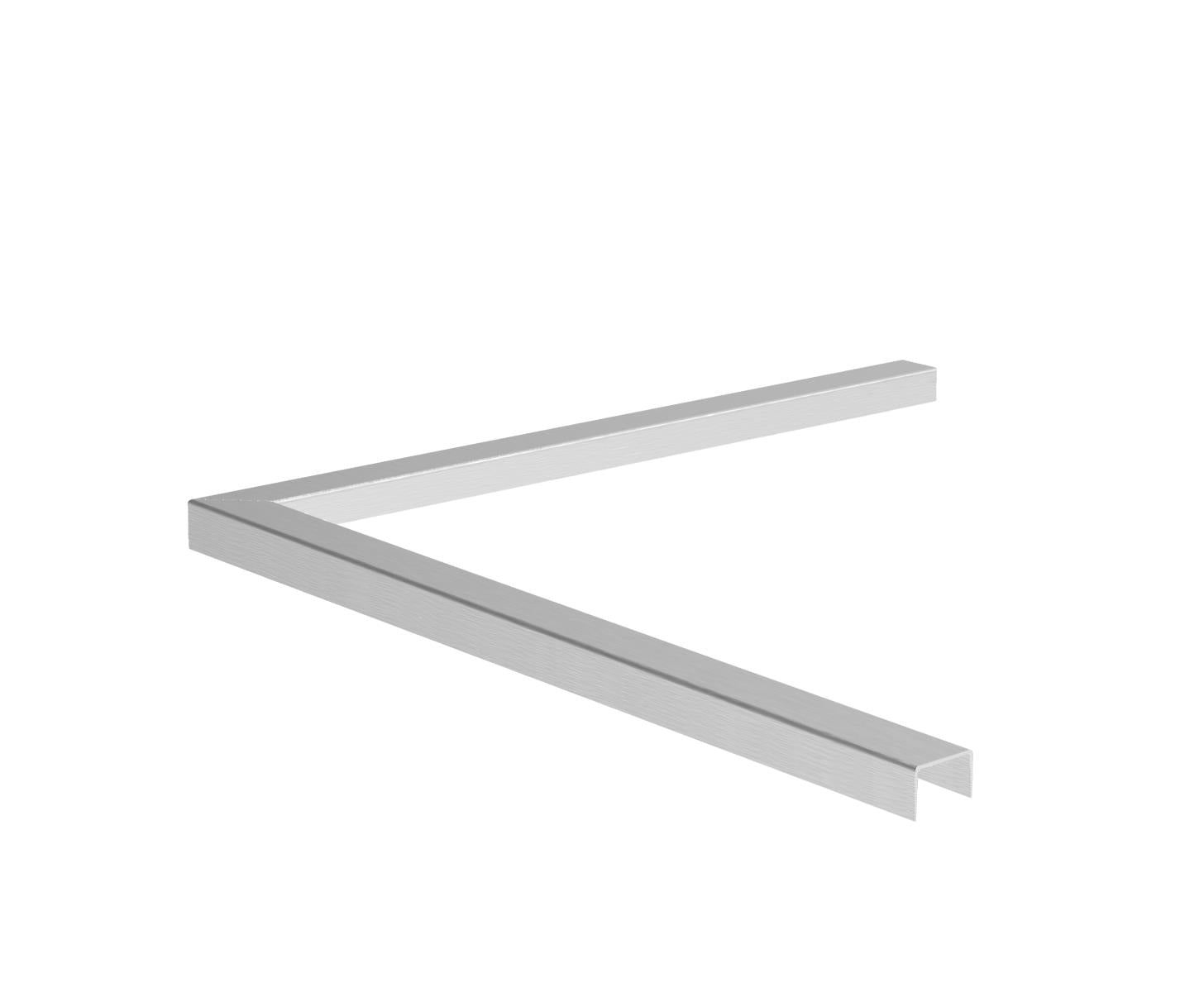 Angolo in alluminio per la finitura di riempimento in vetro, finitura superficiale satinata anodizzata.